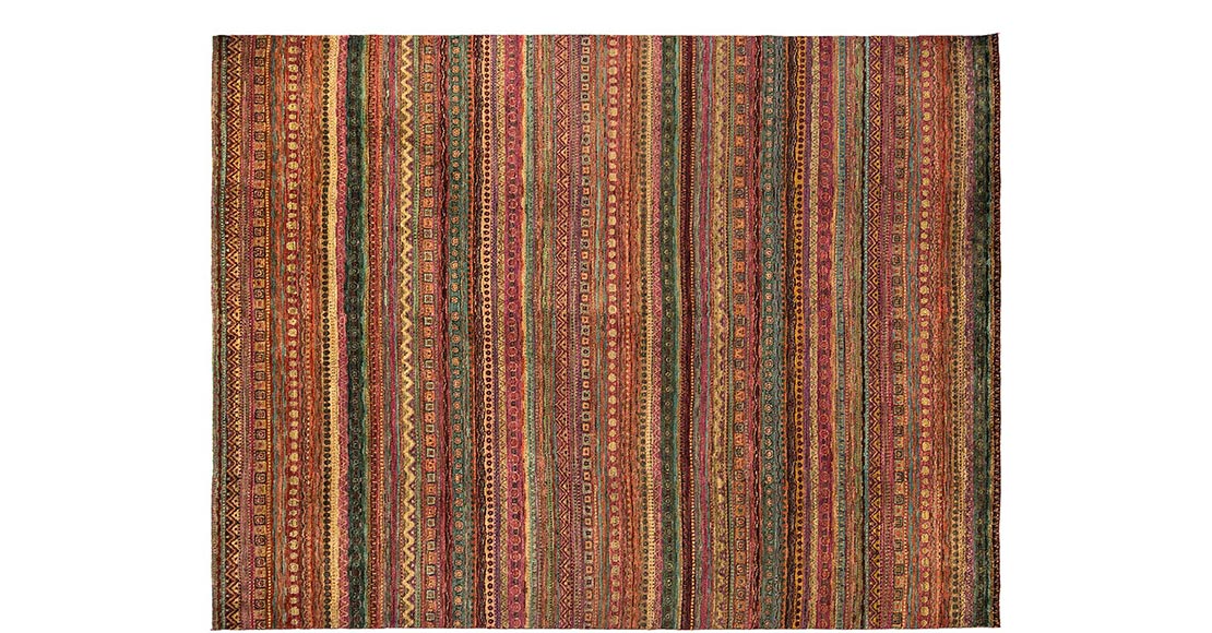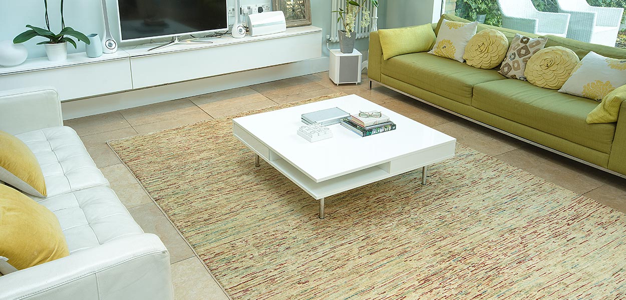 The world Gabbeh translates to unfinished or unclipped, for these rugs weavers leave the pile long. Our production of Gabbehs also includes Natural Gabbeh in which we use un-dyed wool, the colours are ivory, beige and brown. A recent development has been the introduction of our "Retro Gabbeh". These are densely-woven in bright but subtle colour combinations and look wonderful in modern, minimalist or Art Deco period homes.