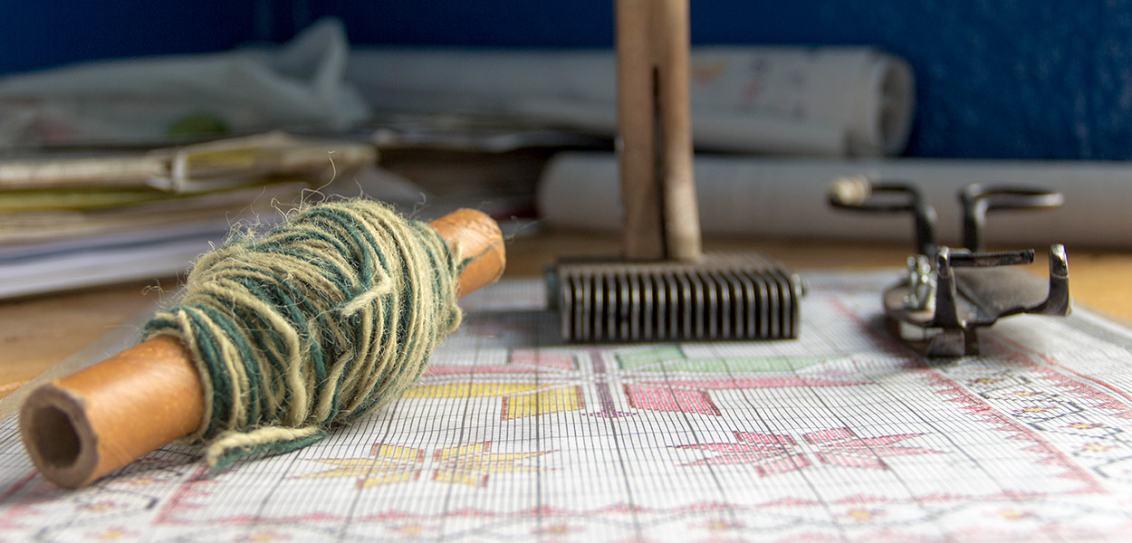 Once all material is ready, then we have to supply our weavers with the design and required yarn.